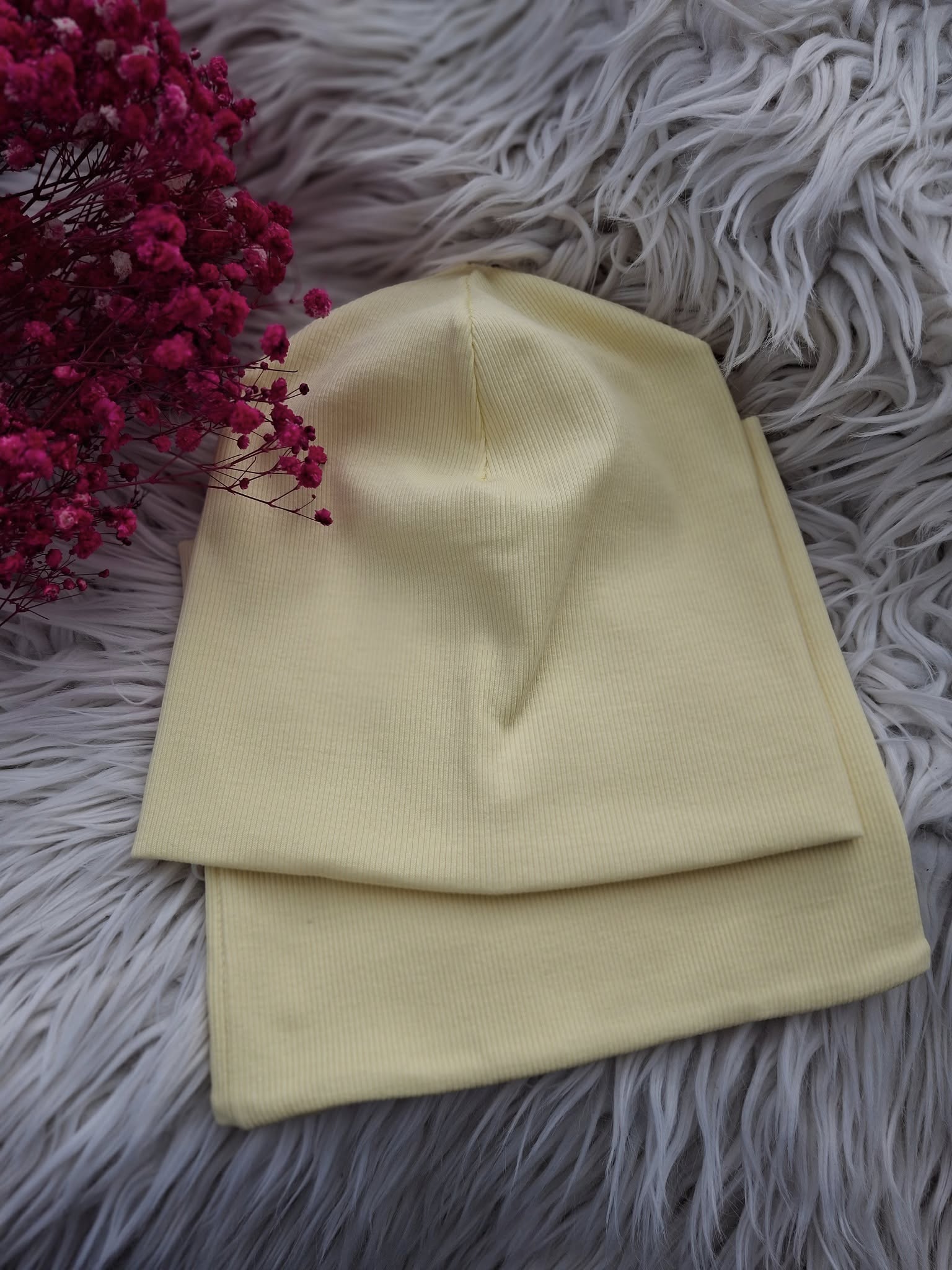 Wiosenny komplet dla dziewczynki: czapka oraz komin lub chusteczka.